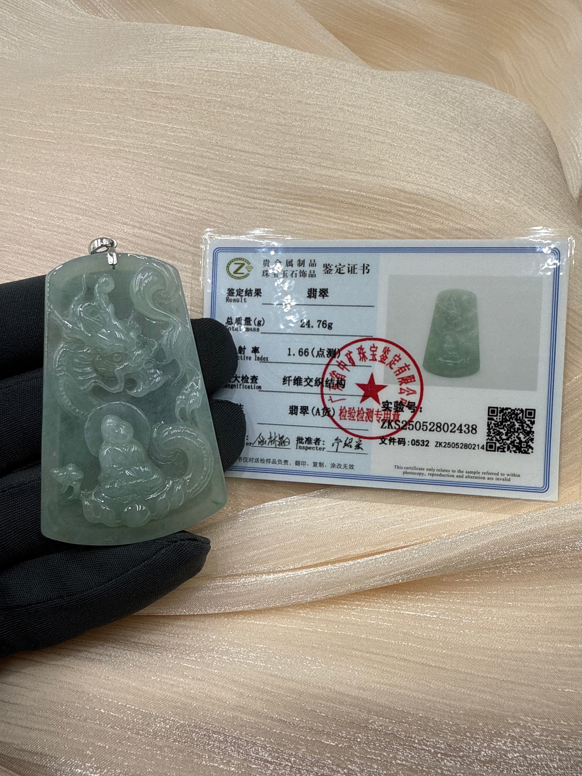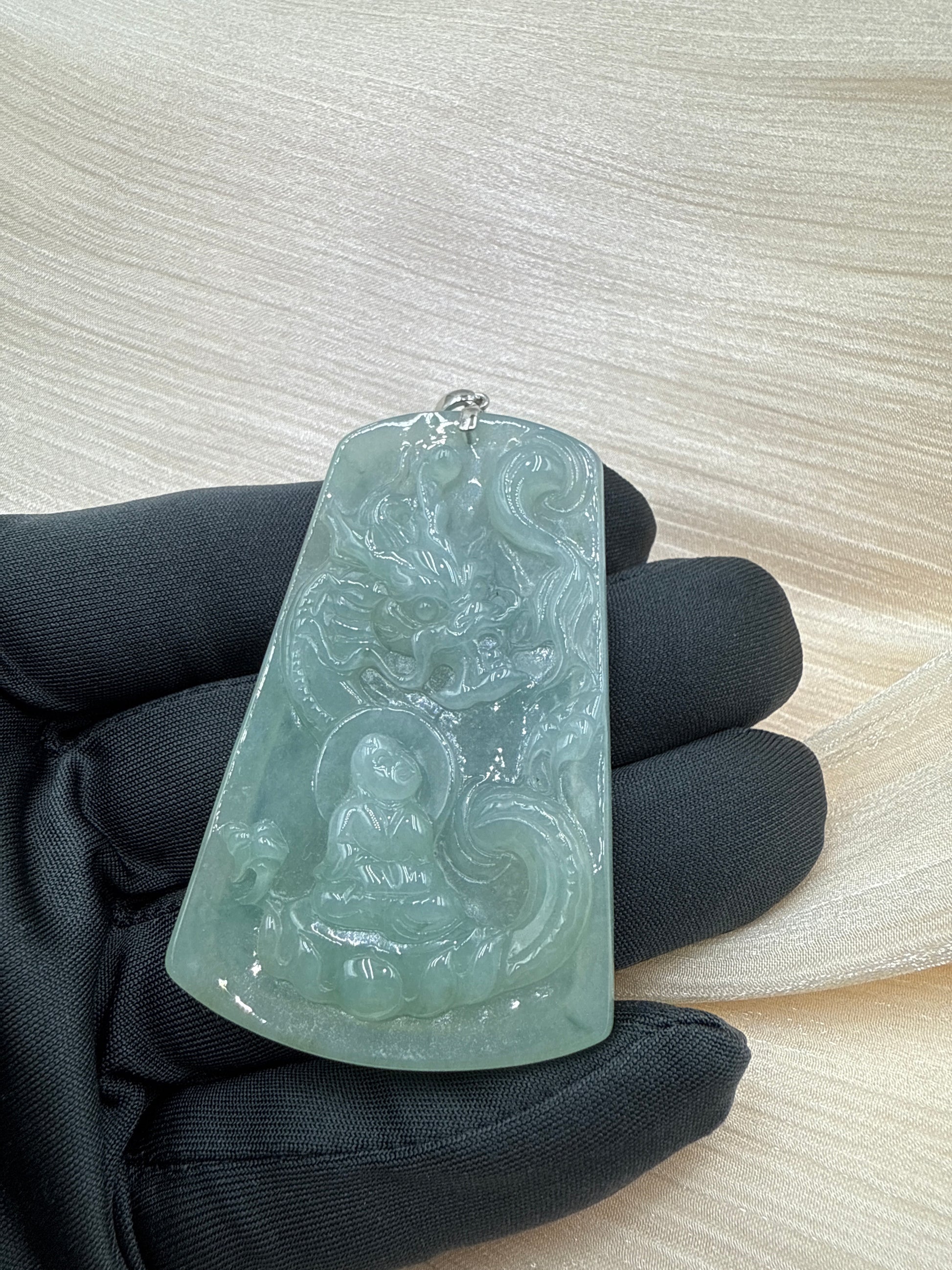 Jade Buddha Dragon Guardian Pendant -翡翠玉神龙户主