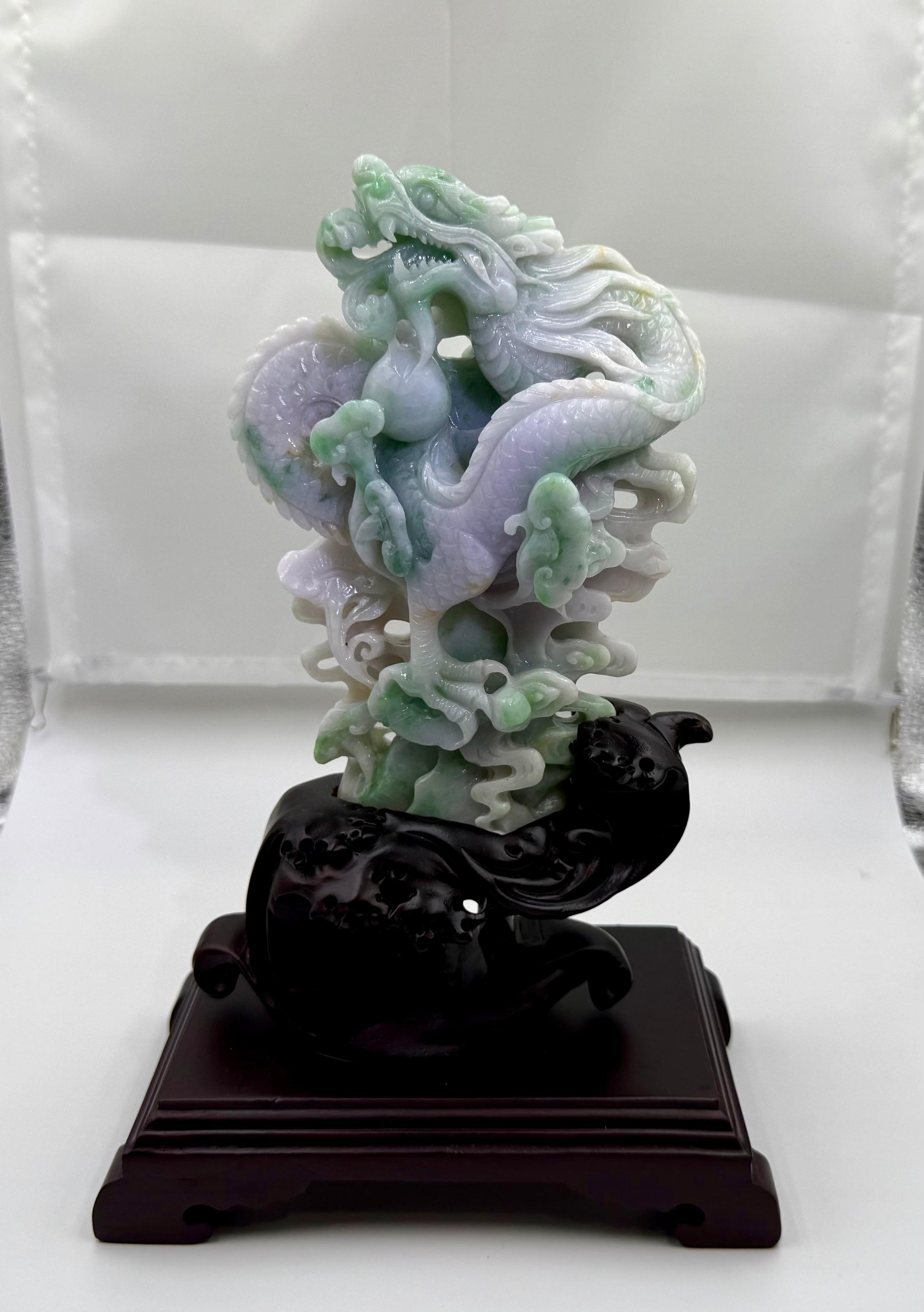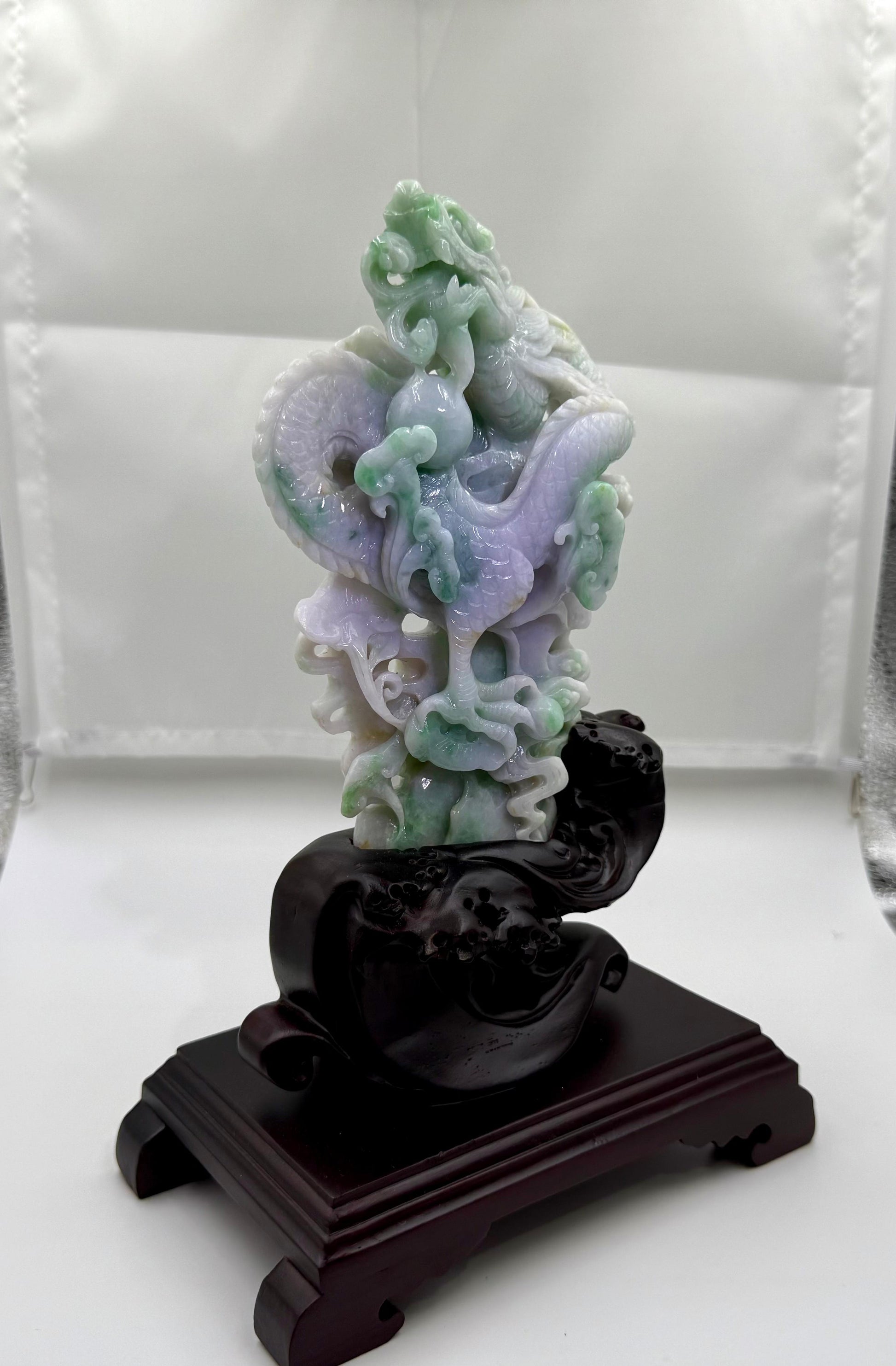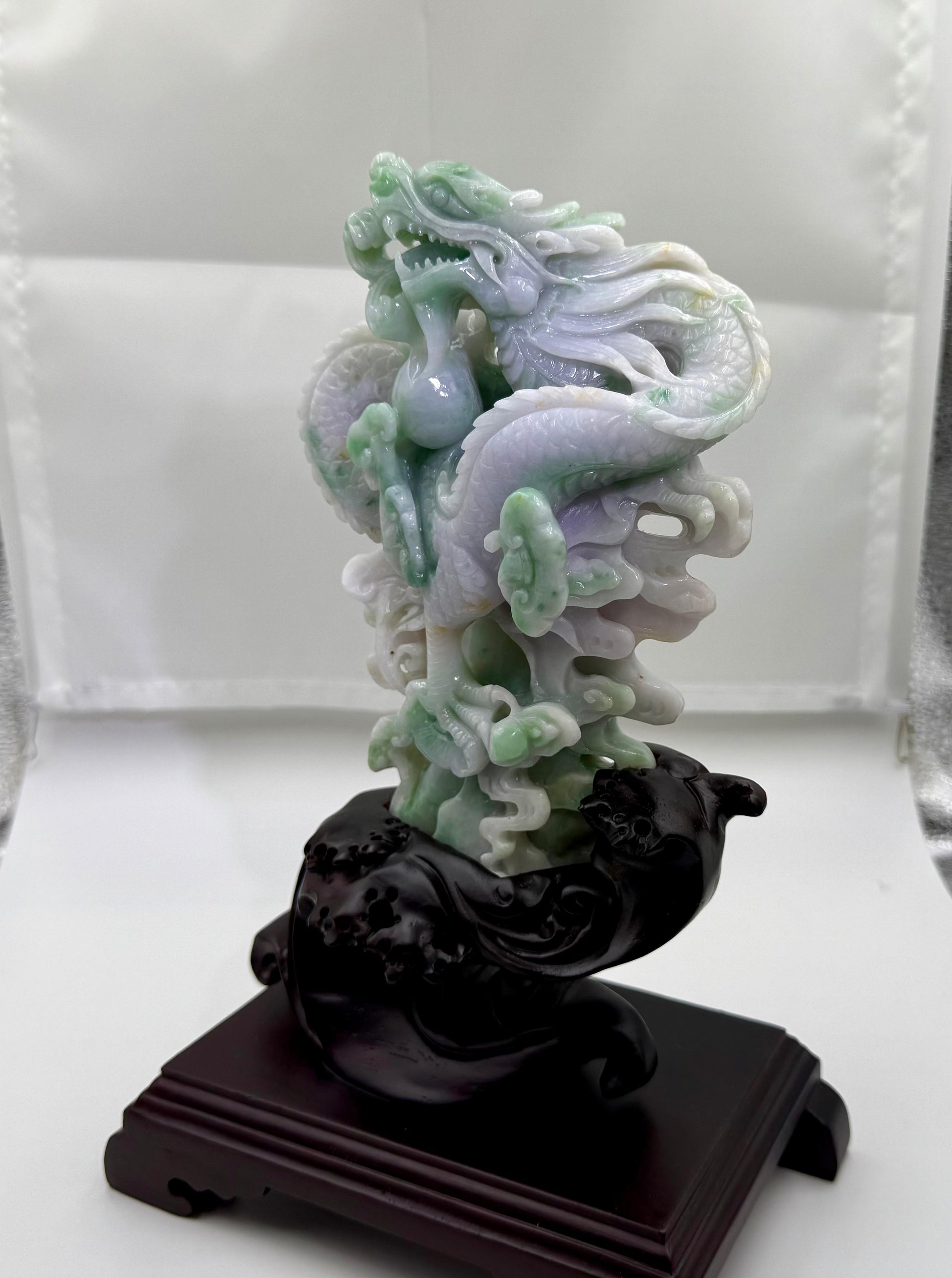 This natural jadeite piece features the powerful dragon design, symbolizing strength, protection, and good fortune. Ideal for display or gifting.