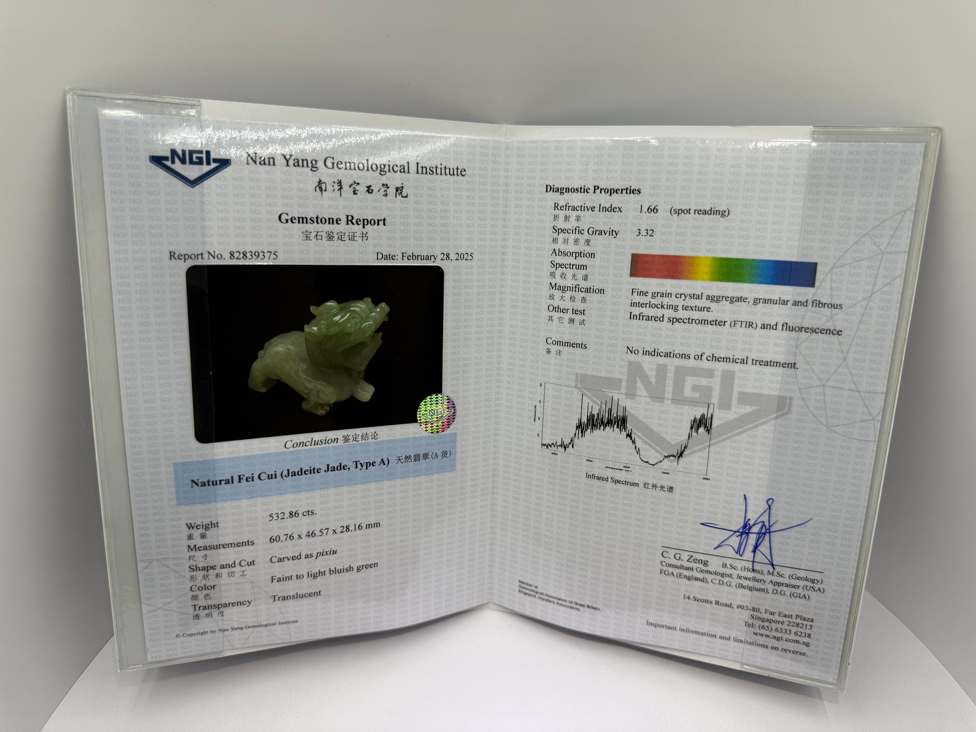 Jade Pi Xiu Type A Jadeite Pendant 翡翠A货貔貅 (PX08) (NGI Certified)