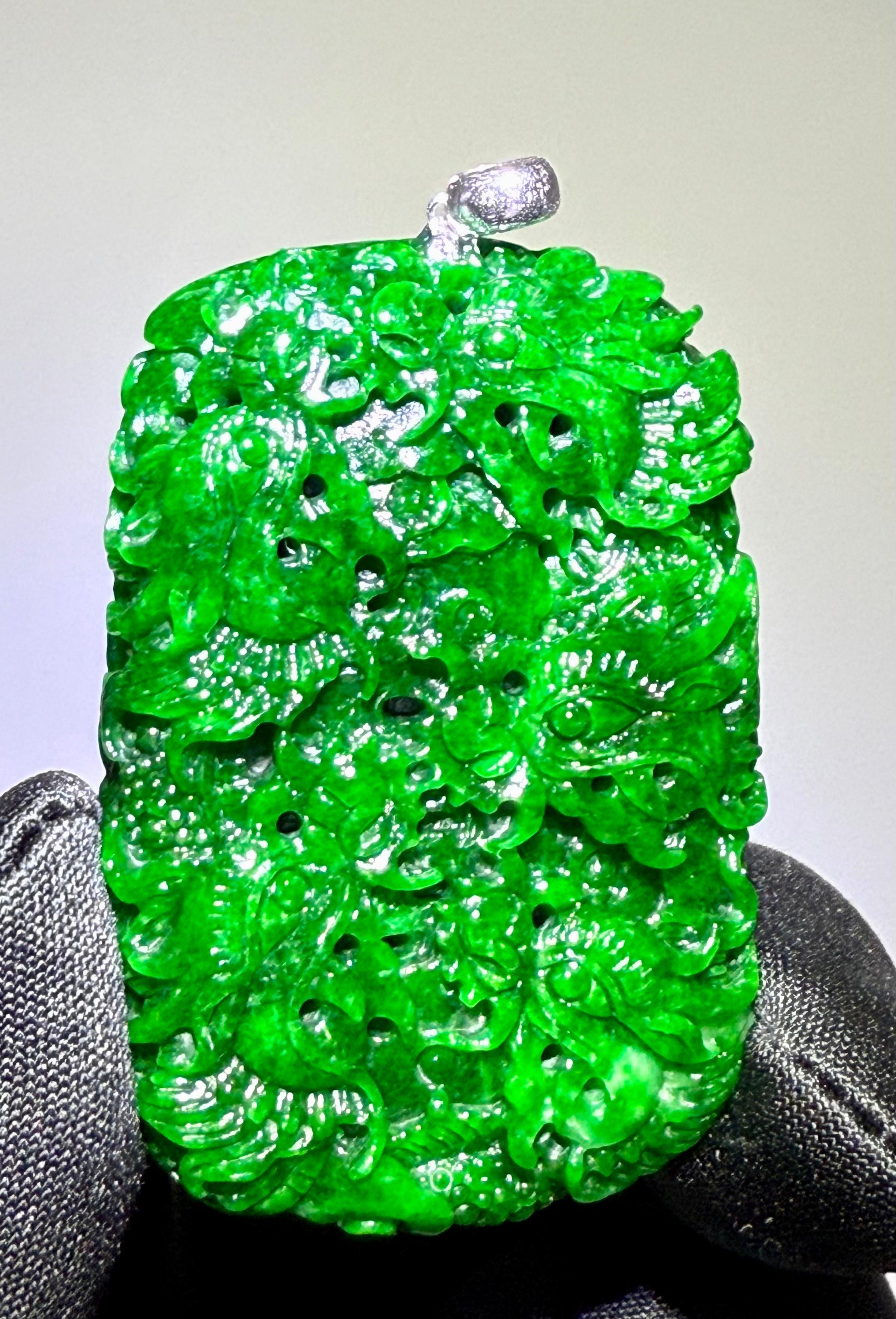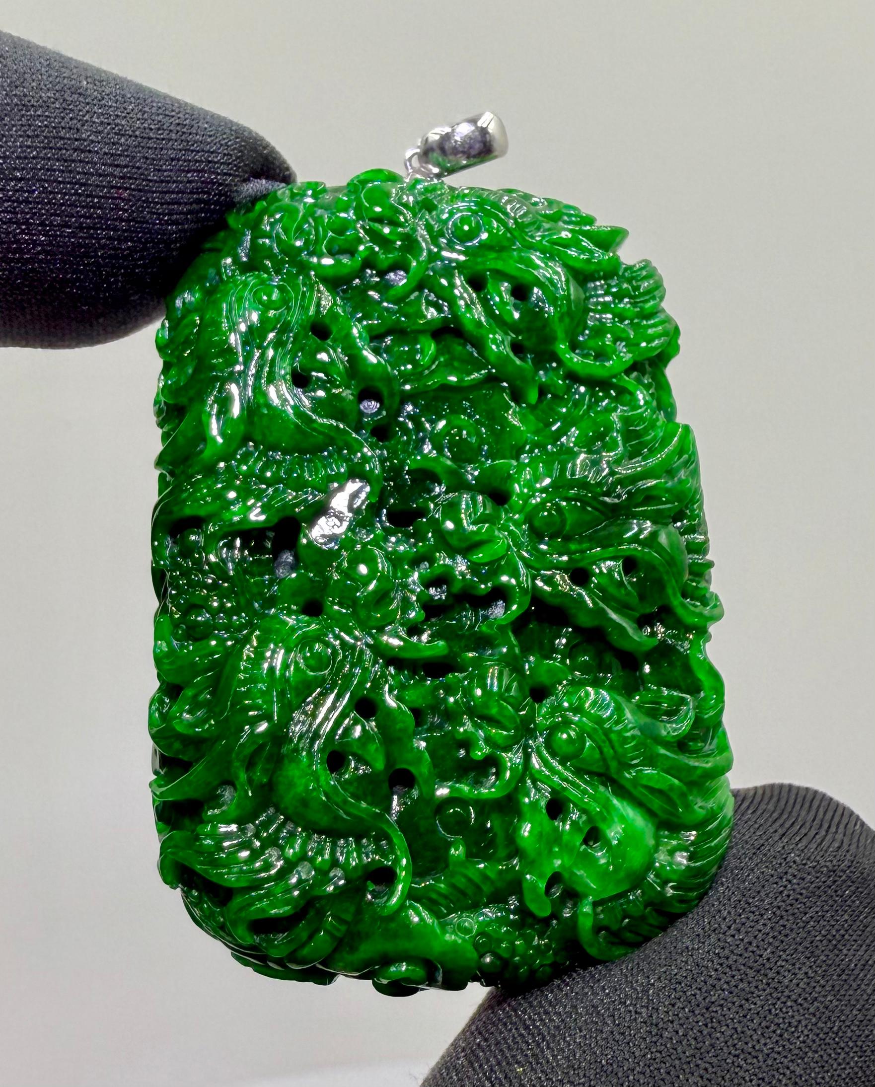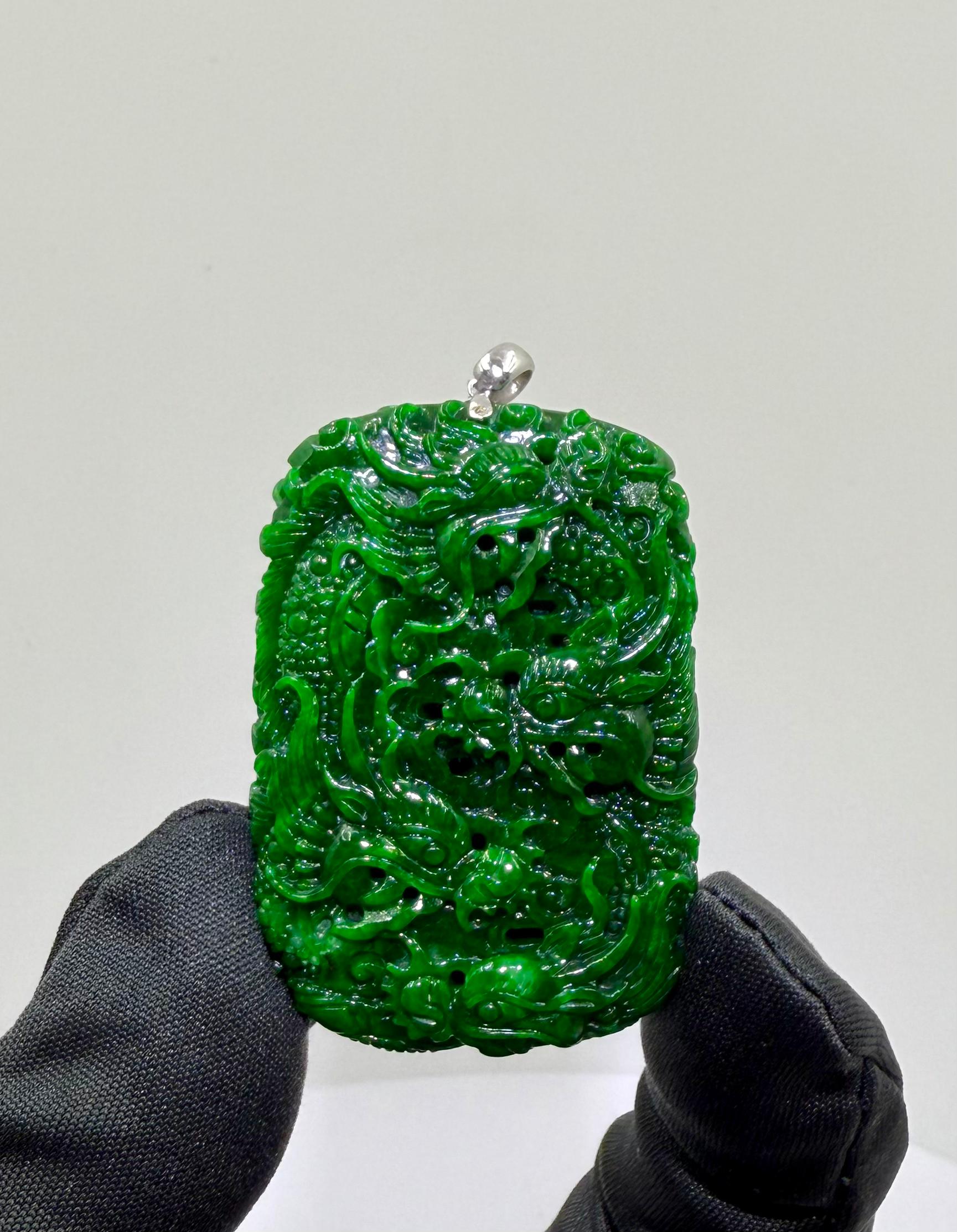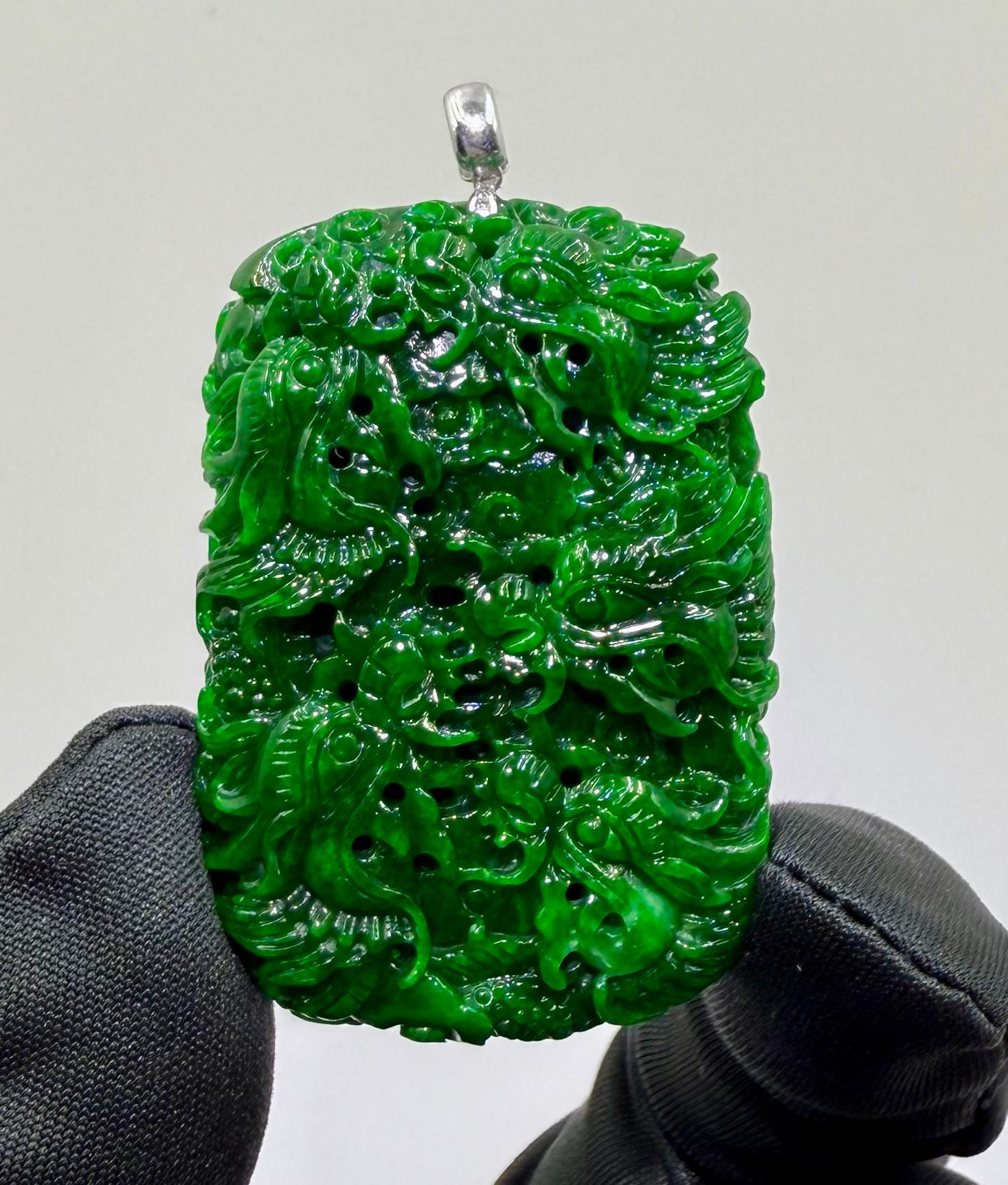 Jade Rich Green Nine Dragon Pendant - 天然翡翠玉九龙牌