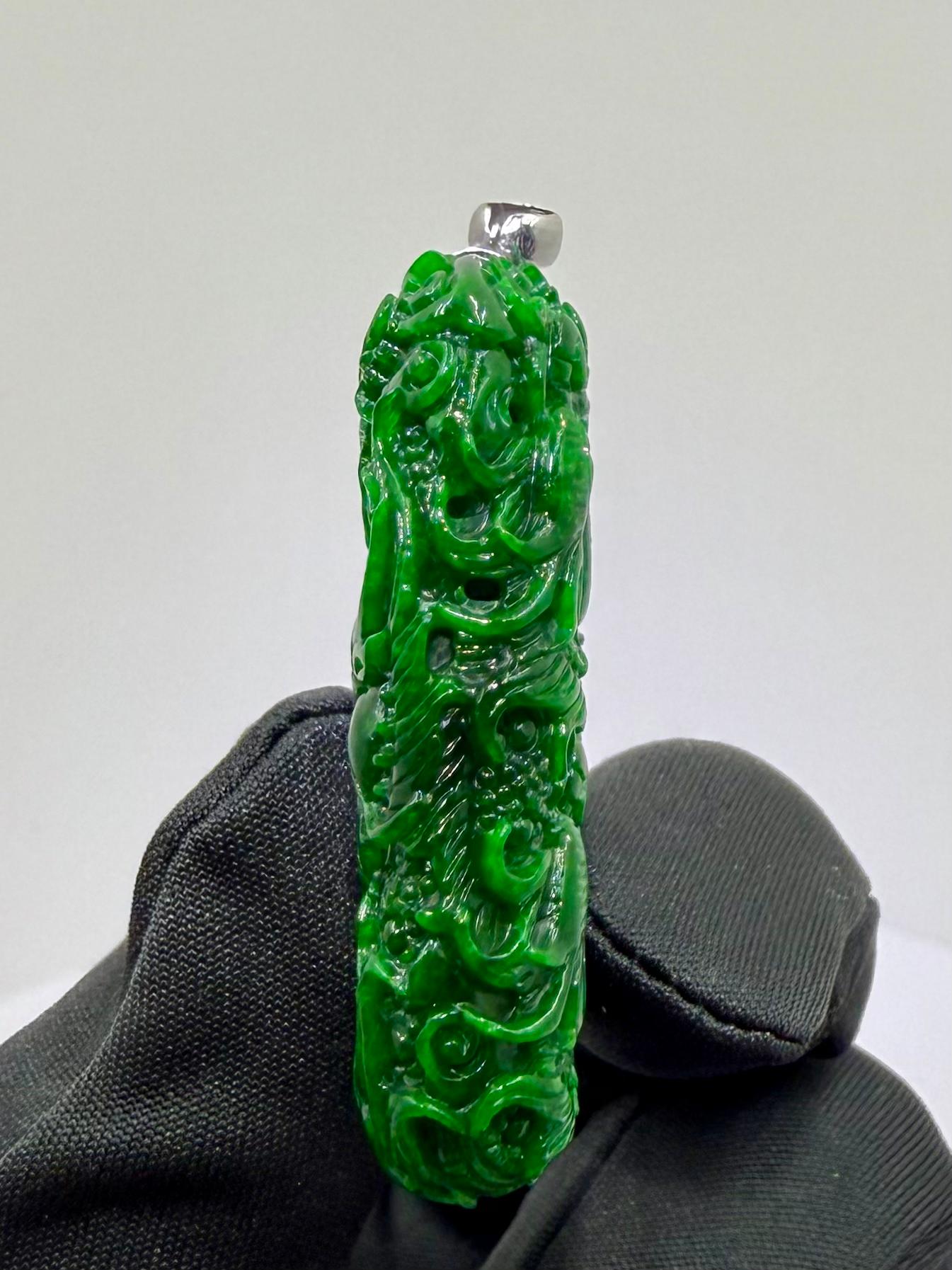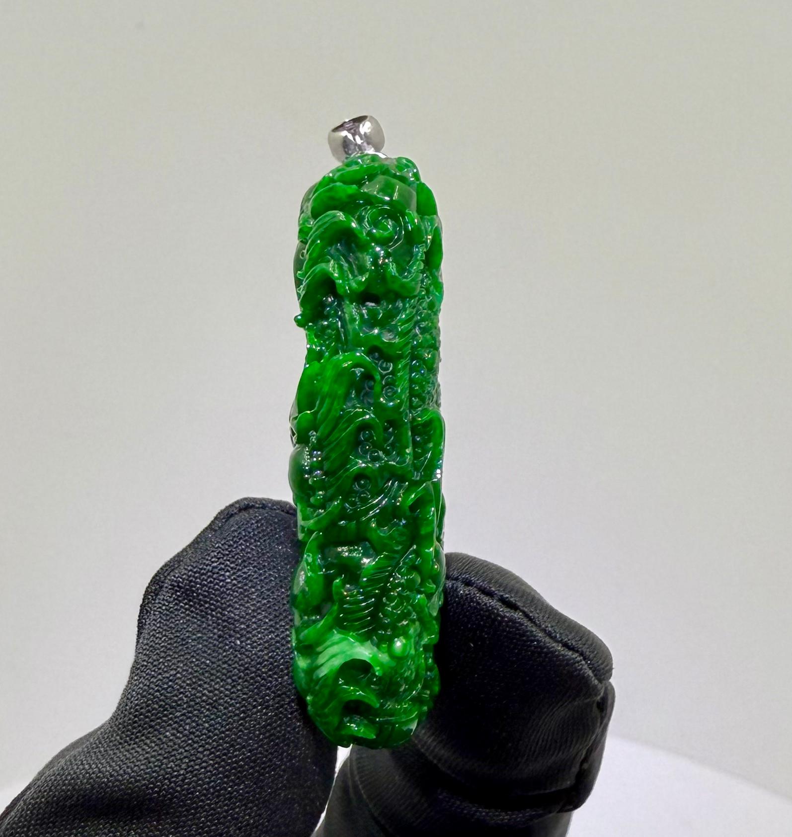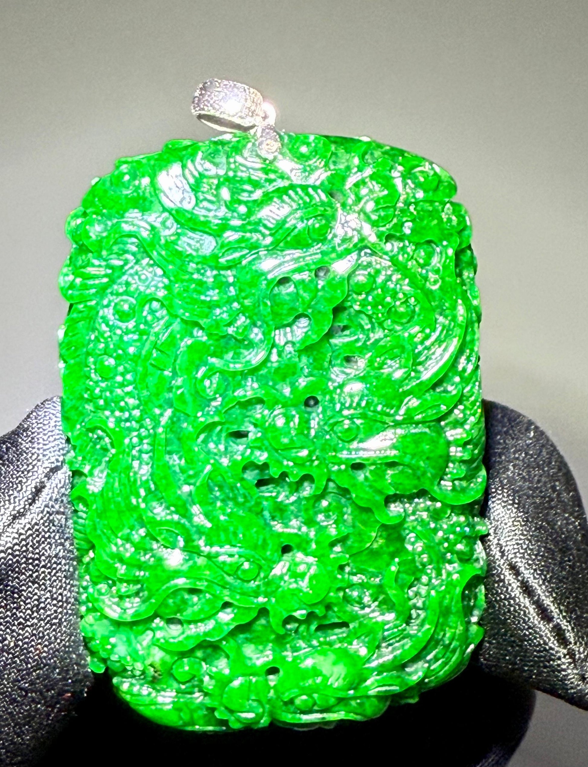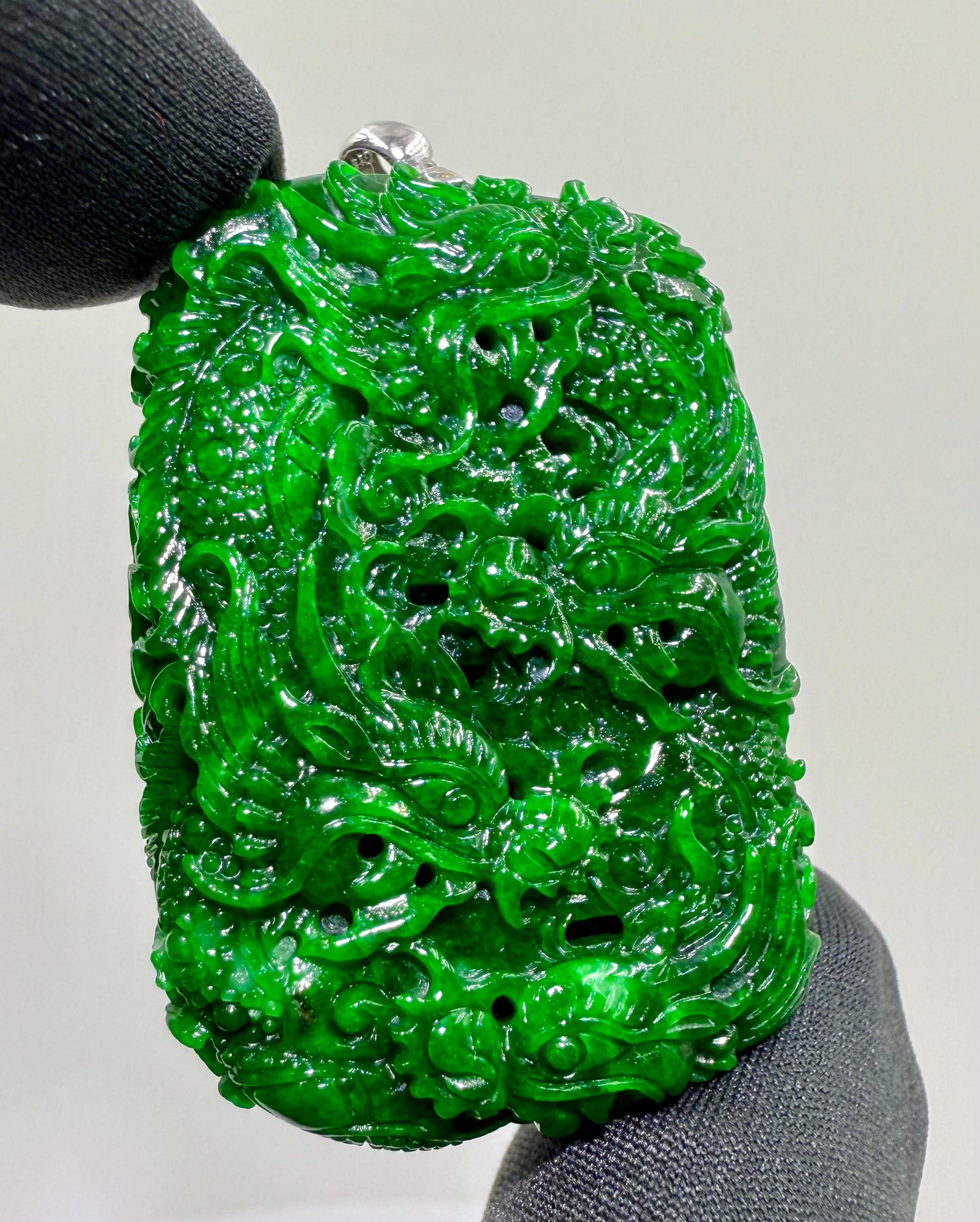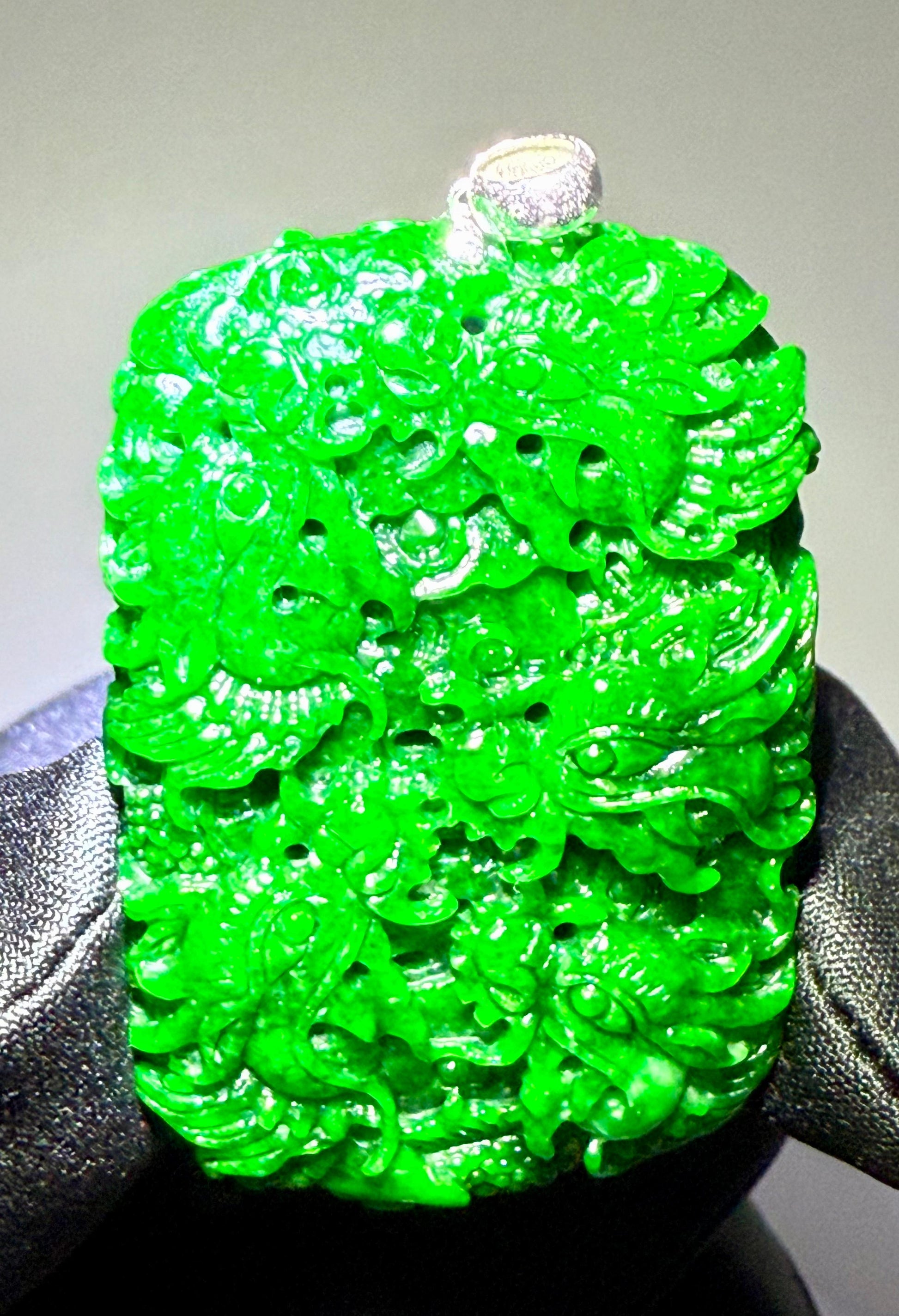 Jade Rich Green Nine Dragon Pendant - 天然翡翠玉九龙牌