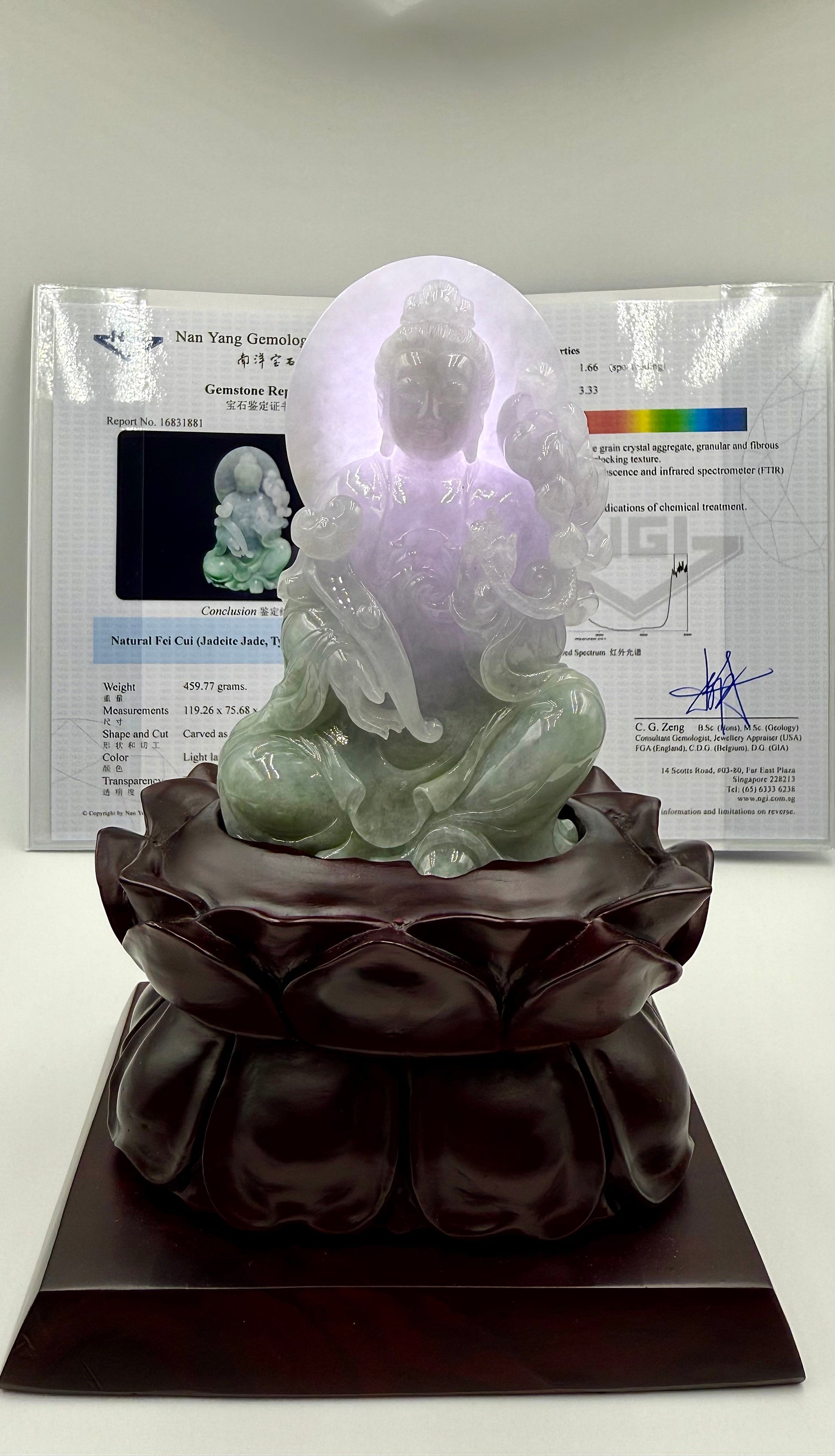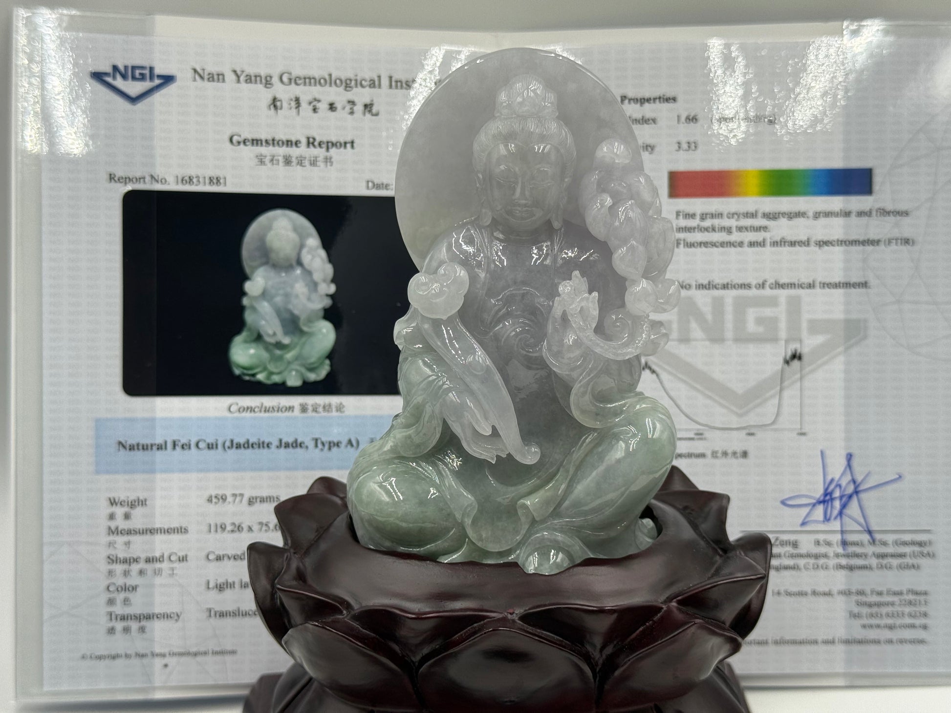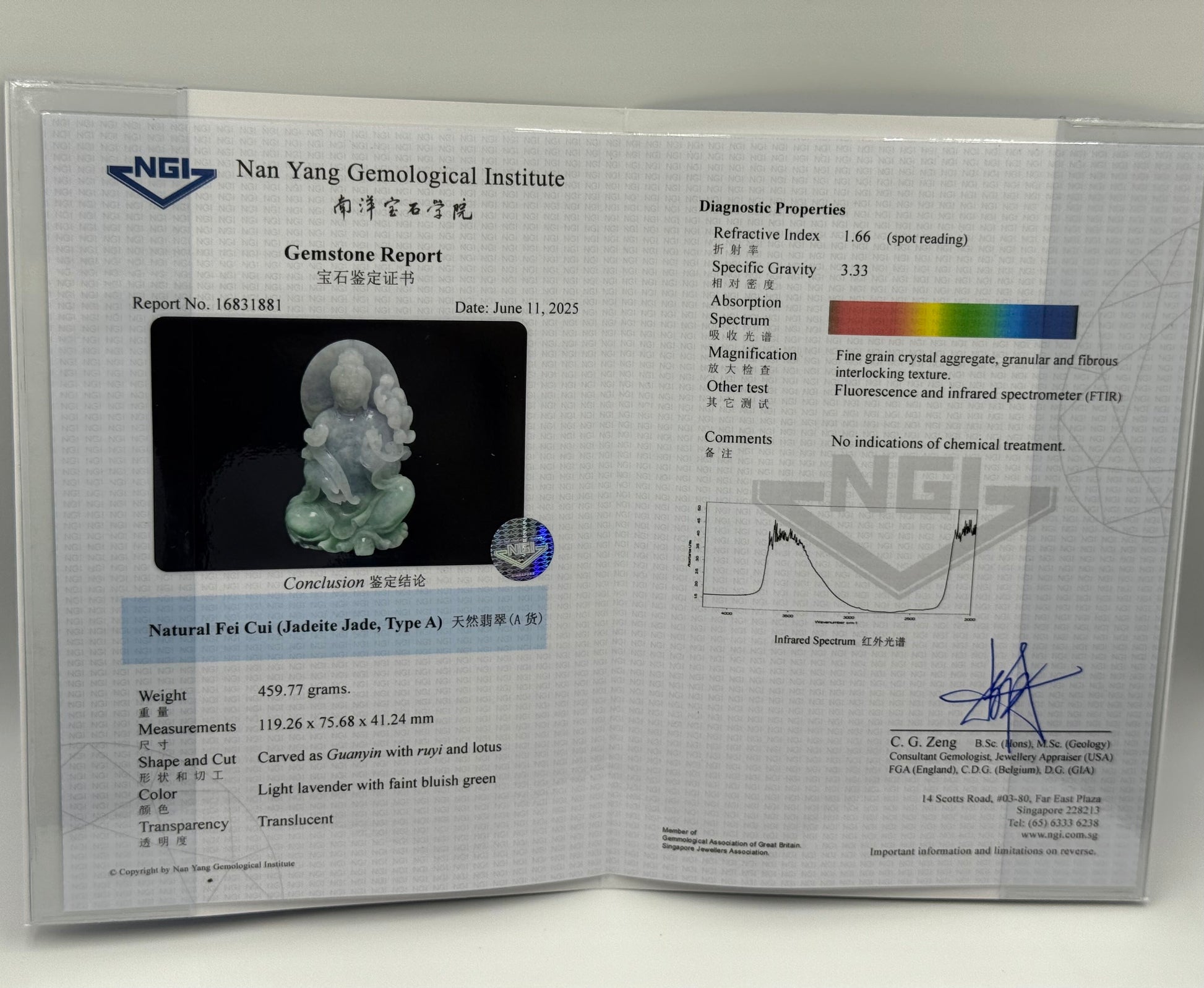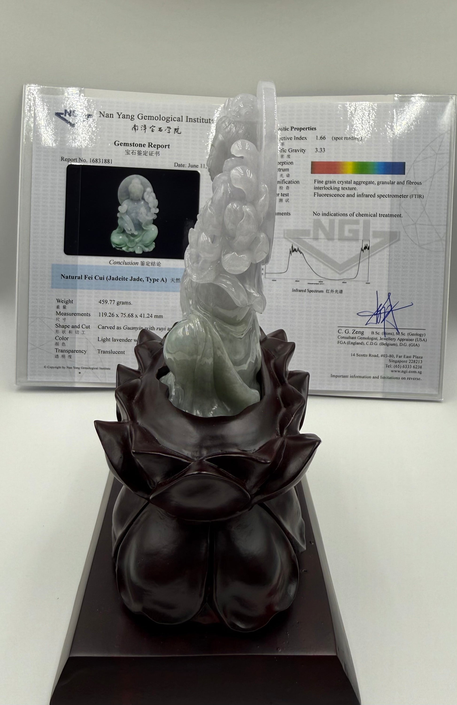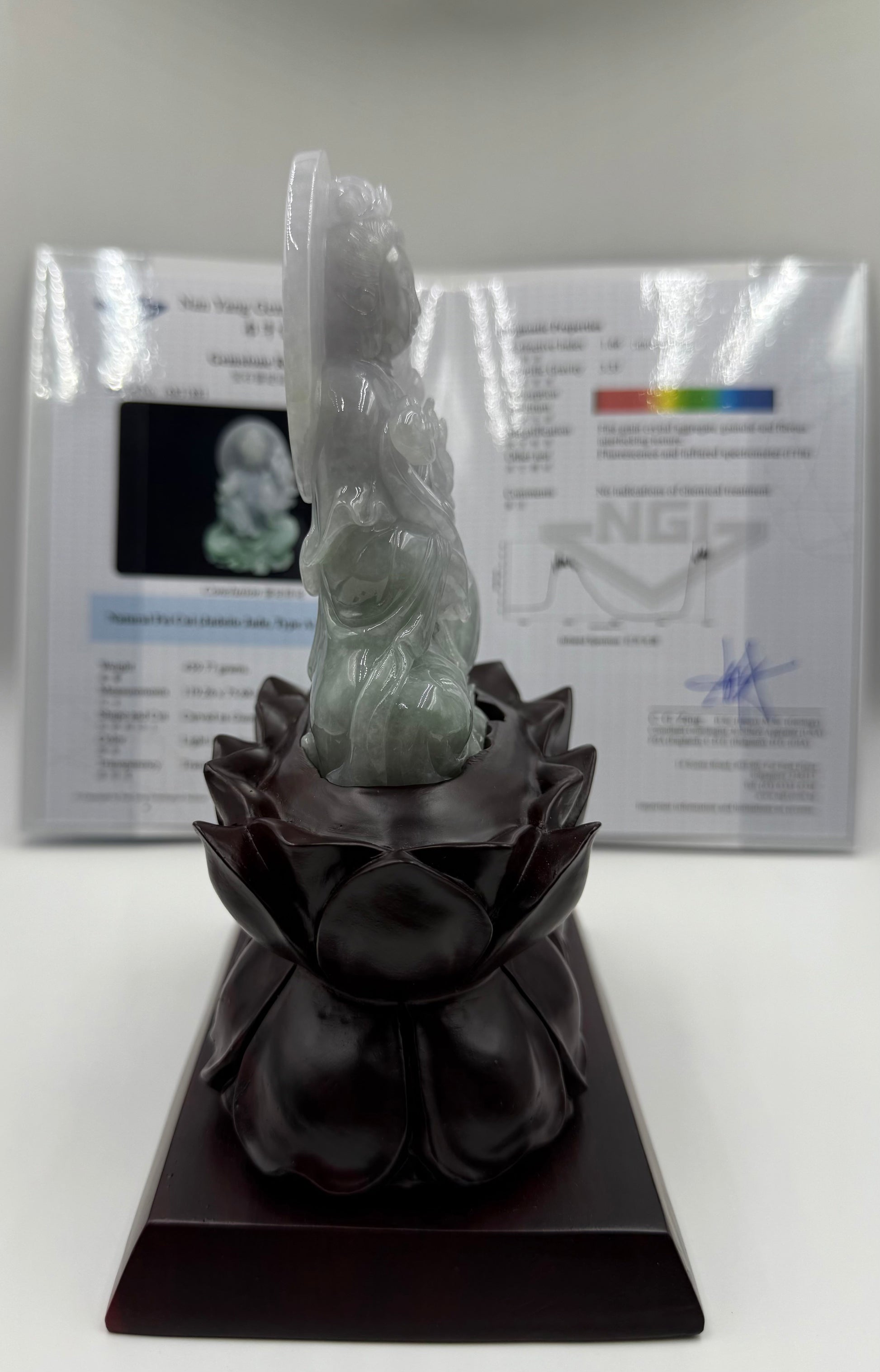 Jadeite Jade, Type A - GuanYin with Ruyi and Lotus 🪷 NGI Certified